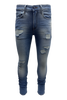 The Jingachi Skinny Jean delivers contemporary edge with timeless denim craftsmanship. This Summer collection piece features a classic four-pocket design enhanced by an embroidered coin pocket for refined detail. Strategic rips and tears across the front create intentional distressing that defines the Blue Collection aesthetic. Reinforced belt loops and a secure button-down zip fly closure ensure durability, while the signature white Vialli tag at the back confirms authentic quality. A versatile skinny silhouette that transitions effortlessly from casual to styled occasions.